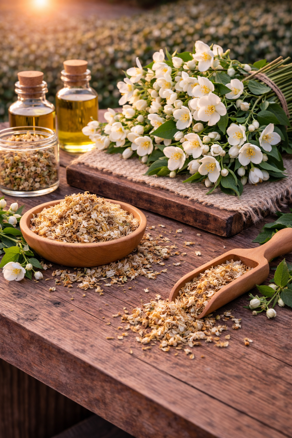 Zalij 1 lžíci sušených květů jasmínu 0,5 l horké vody. Nech louhovat 10–15 minut, poté sceď a nech vychladnout.