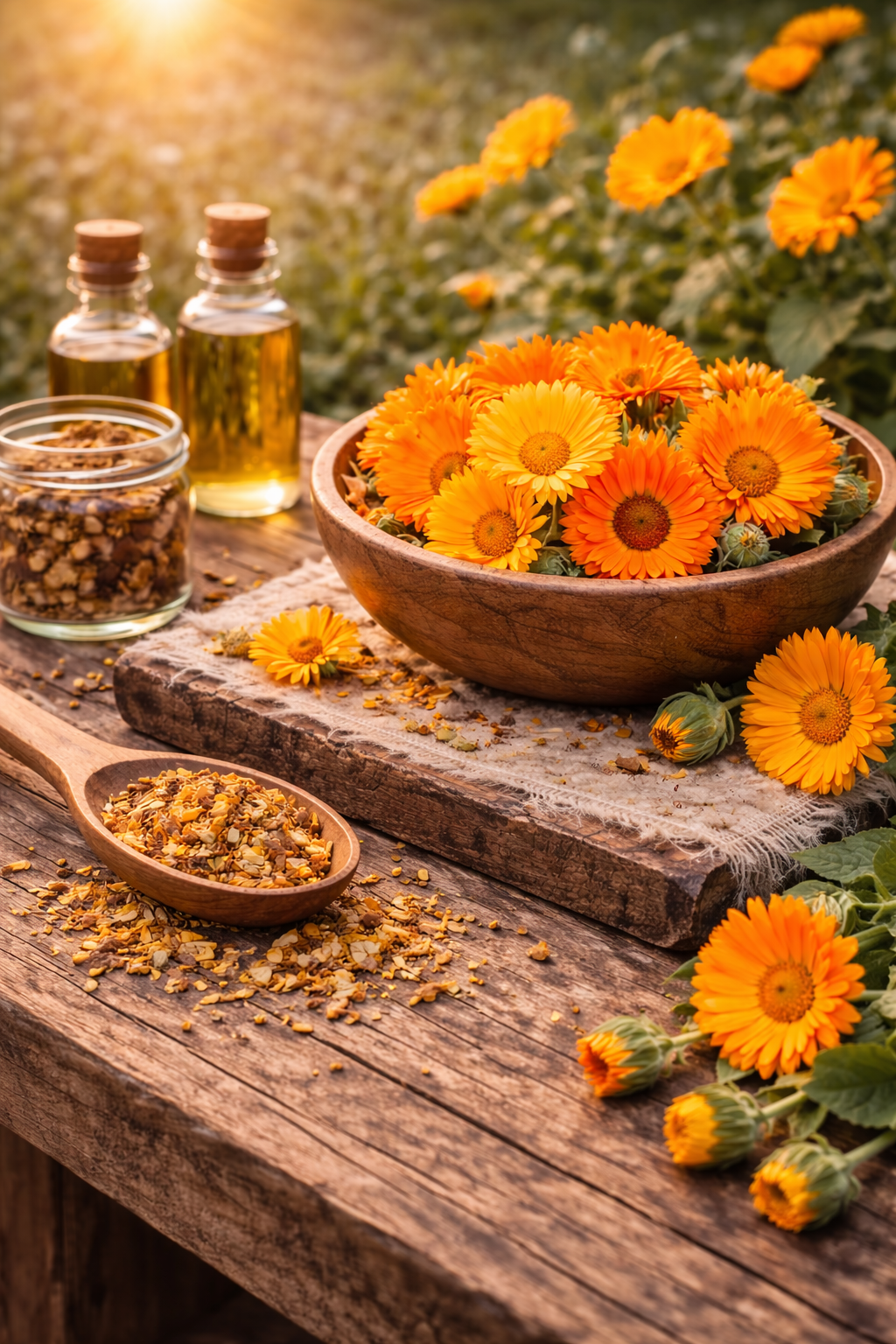 Měsíček lékařský patří mezi nejstarší léčivé rostliny používané pro hojení ran a regeneraci pokožky. Jeho zářivě oranžové květy obsahují látky s protizánětlivými a regeneračními účinky. V péči o vlasy a pokožku hlavy je nenahraditelný.