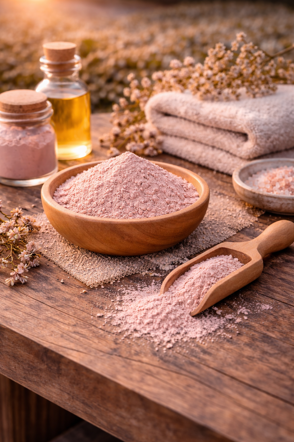 Růžový jíl je oblíbený především v péči o pleť, ale své místo má i ve vlasové rutině jako doplňková péče pro podporu vitality pokožky hlavy.